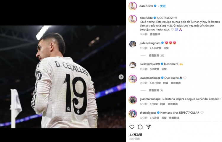 2月20日訊 皇馬在本輪歐冠主場3-1擊敗曼城,成功晉級16強戰(zhàn),中場塞巴略斯也在賽后發(fā)文紀(jì)念。