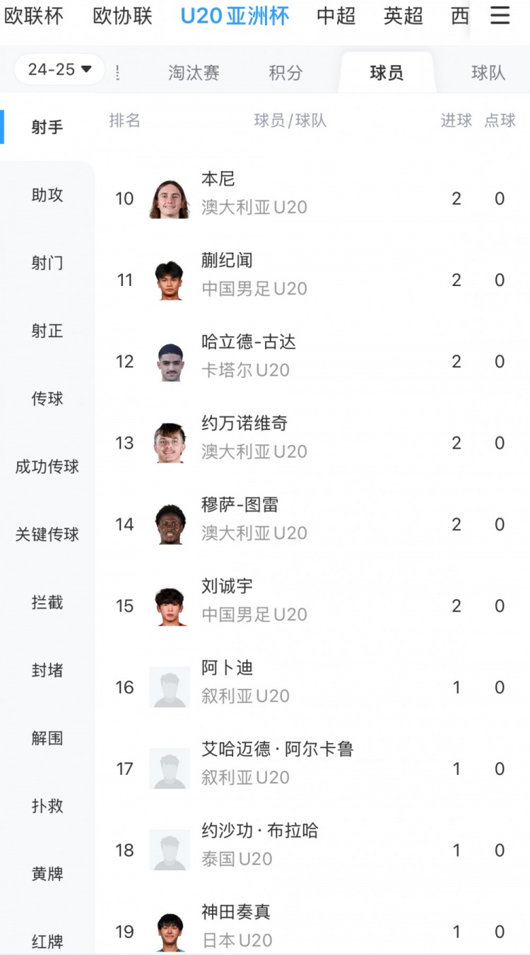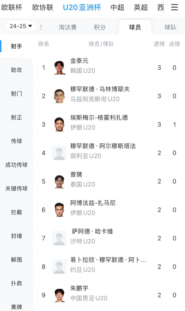 U20亞洲杯射手榜最新統(tǒng)計(jì)如下↓↓↓