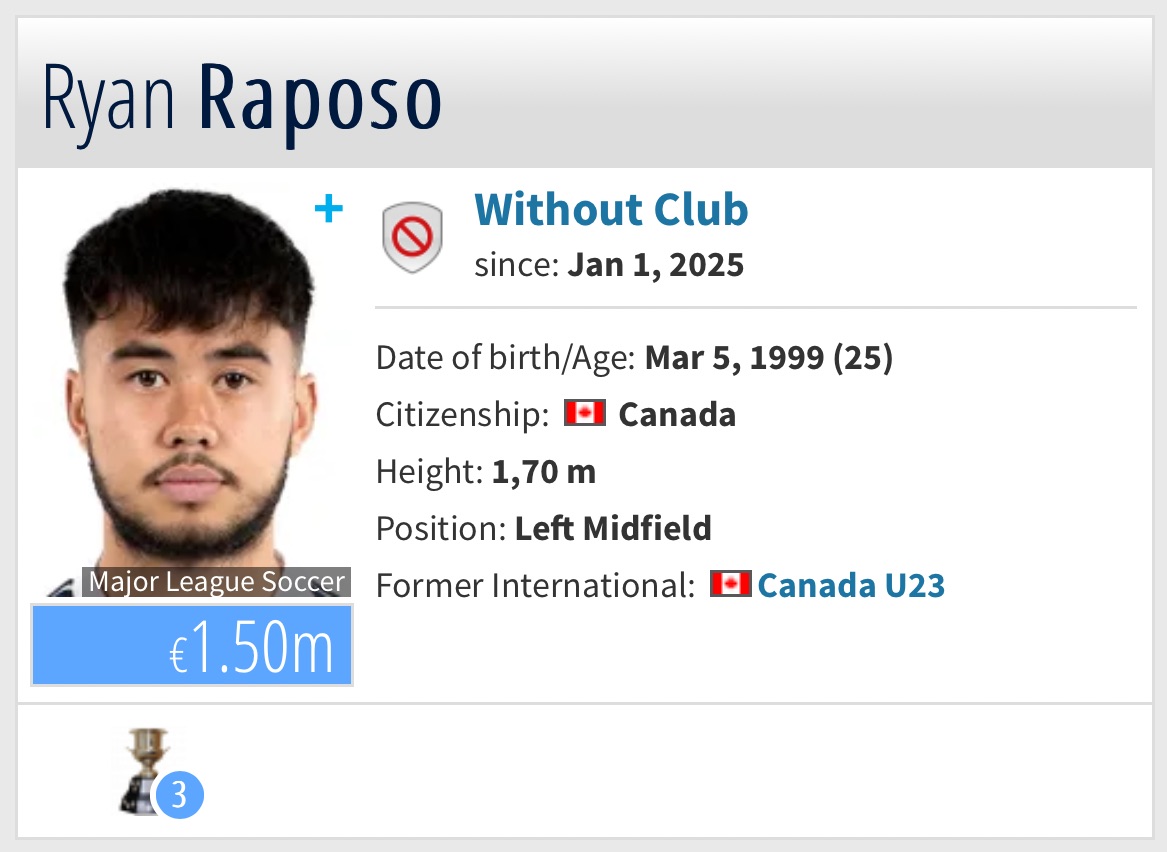 伍小海此前在溫哥華白浪效力五年,現(xiàn)年25歲的他德轉(zhuǎn)身價(jià)為150萬歐元。