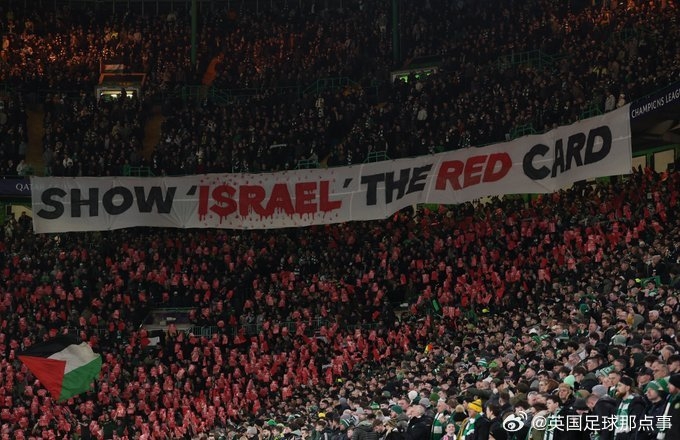 此前凱爾特人1比2不敵拜仁的歐聯(lián)比賽中,凱爾特人球迷拉起條幅:“向以色列出示紅牌” (圖3)