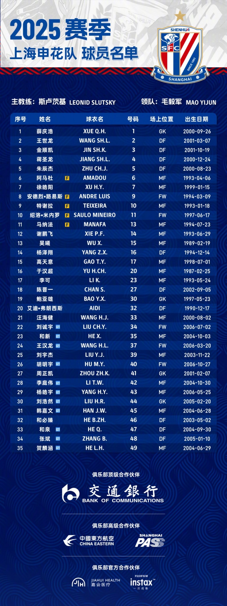 昨天,申花官方公布了2025賽季一線隊(duì)名單。跟上個(gè)賽季相比,申花新賽季的一線隊(duì)年輕球員更多了,有多達(dá)11名U21的年輕球員,所以球隊(duì)的平均年齡已經(jīng)下降到25.4歲,成為中超最年輕的球隊(duì)。北京國安、武漢三鎮(zhèn)、梅州客家并列第2,平均年齡是26.6歲,比申花高出了1.2歲。