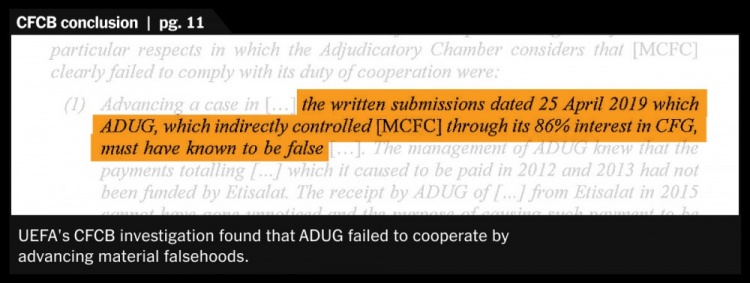 最初,CFCB聽證會發(fā)現(xiàn),曼城違反了其規(guī)定第56條,未能提供所要求的信息,并一度提出球隊(duì)所有權(quán)“存在作假”的指控。