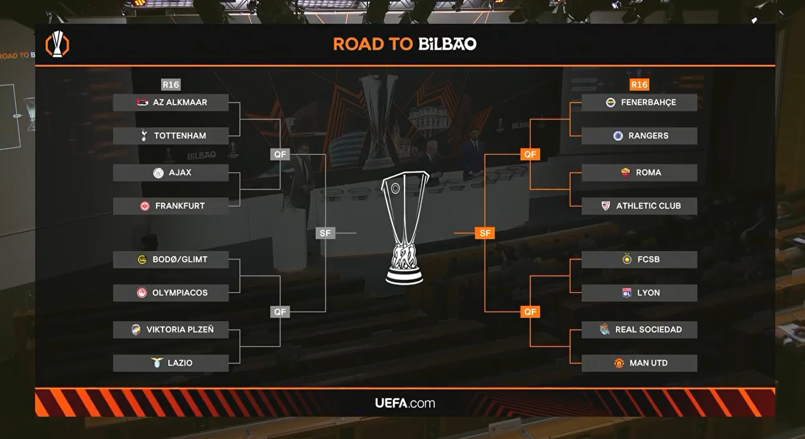 費(fèi)內(nèi)巴切在1/8決賽中的對(duì)手將是格拉斯哥流浪者,而如果想要最終奪冠,穆里尼奧可能會(huì)一路對(duì)陣自己的老東家球隊(duì):1/4決賽vs羅馬、半決賽vs曼聯(lián)、決賽vs熱刺。