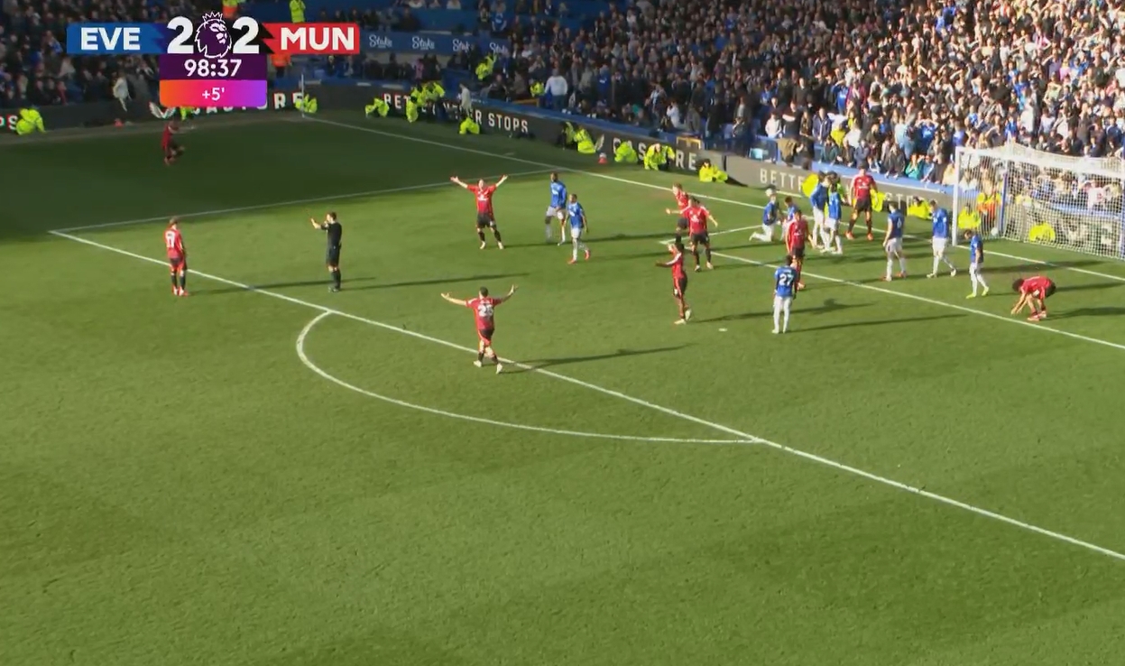 最后時(shí)刻球被埃弗頓碰出底線 裁判沒給角球&曼聯(lián)球員集體舉手抗議