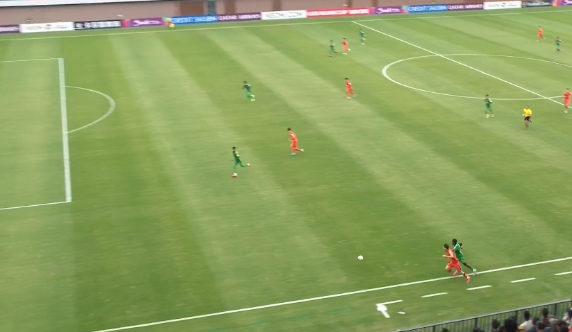 根本攔不?。⊥踱晽潝嗲?二過一,邊路爆趟沙特后衛(wèi)被解圍