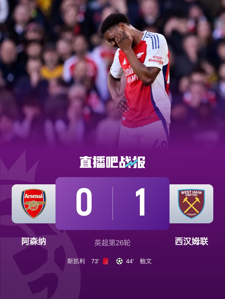 02月23日訊 英超第26輪,阿森納主場0-1不敵西漢姆,錯失追分機會。利物浦周中先踢了第29輪的比賽,他們客場2-2戰(zhàn)平維拉。本輪,阿森納主場卻0-1不敵西漢姆,利物浦將客場挑戰(zhàn)曼城。 標簽: 足球 英超 阿森納 利物浦