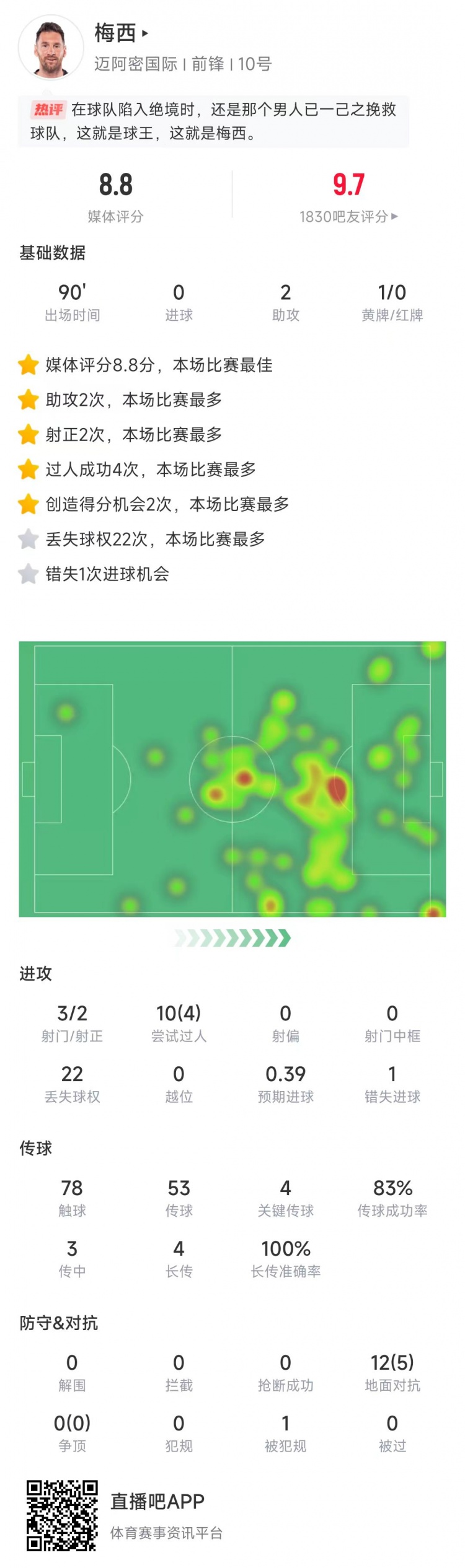 梅西本場(chǎng)比賽數(shù)據(jù):