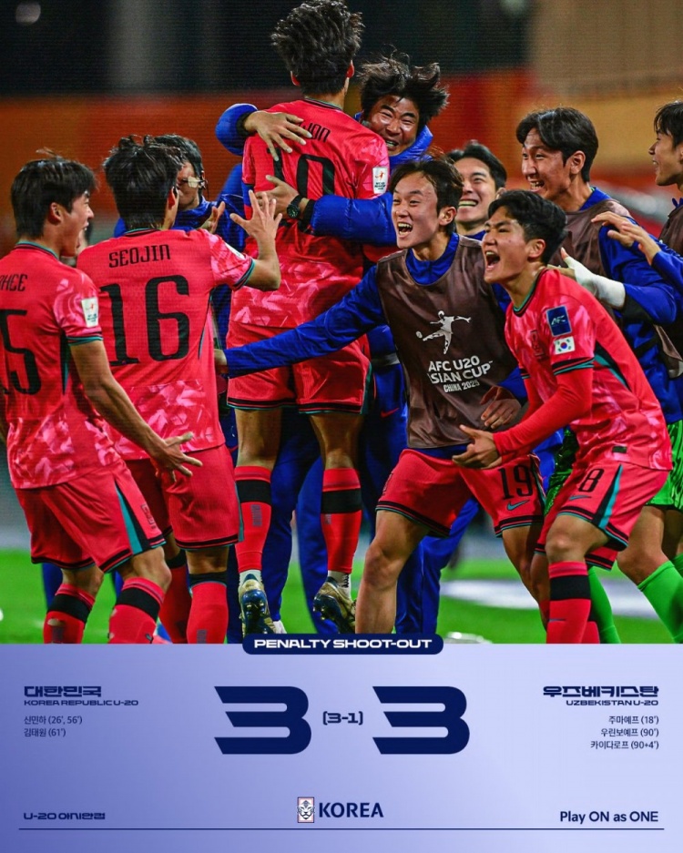 2月24日訊 U20亞洲杯1/4決賽,韓國(guó)U20和烏茲別克斯坦U20在常規(guī)時(shí)間戰(zhàn)成3-3,最終通過點(diǎn)球大戰(zhàn)韓國(guó)U20總比分6-4淘汰烏茲別克斯坦U20,獲得世青賽資格。
