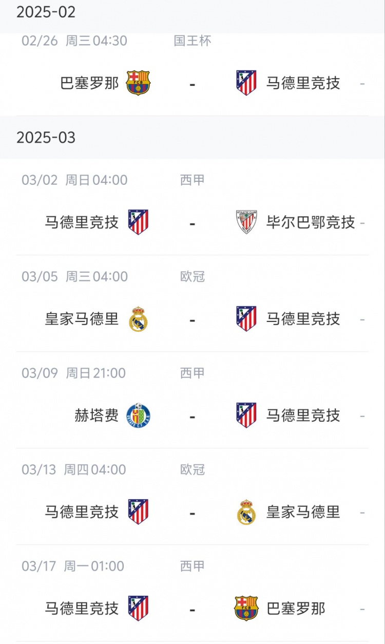 2月24日訊 未來三周,巴薩、皇馬和馬競將迎來一系列關(guān)鍵賽事?!睹咳阵w育報》報道,巴薩的賽程相對較為有利,六場比賽中將有四場主場作戰(zhàn)。