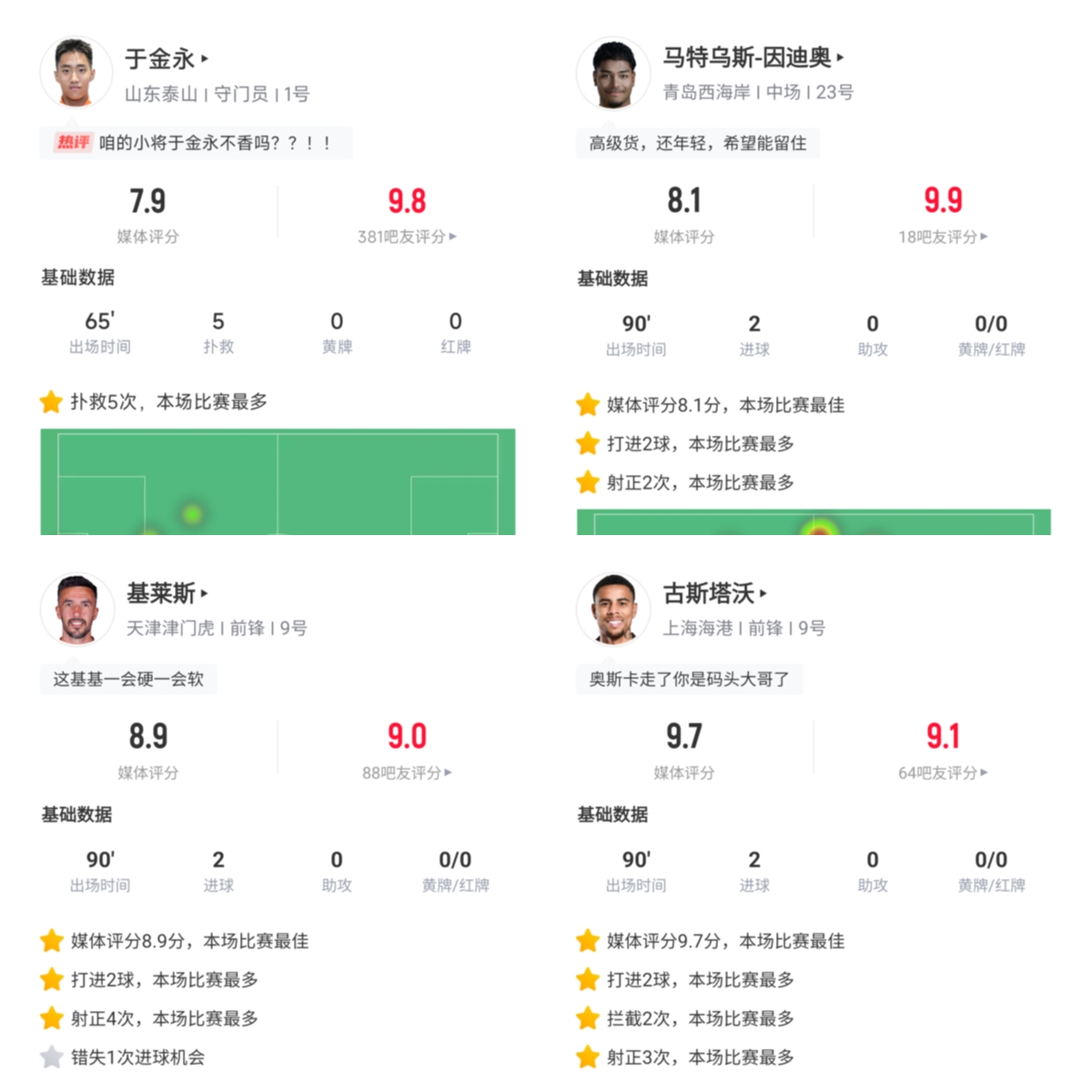 02月24日訊 重磅開啟中超每輪最佳球員票選,中超首輪最終當(dāng)選的球員為——山東泰山的門將于金永。這位20歲的小將險(xiǎn)勝津門虎前鋒基萊斯,他僅僅只比基萊斯多1.7%的選票。