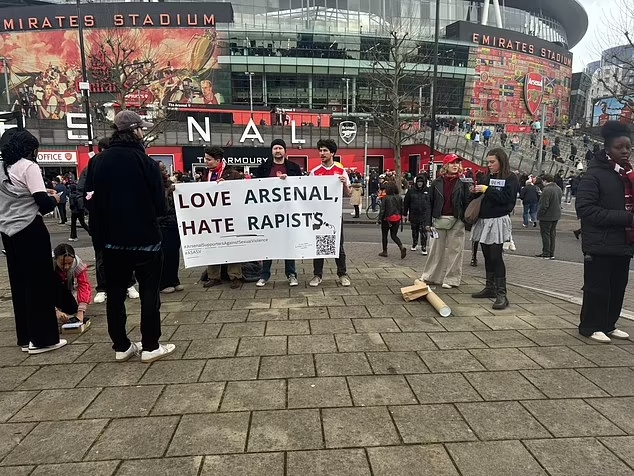 2月25日訊 《每日郵報》報道,在阿森納和西漢姆的比賽前,有阿森納球迷在球場外抗議強奸犯和性暴力。