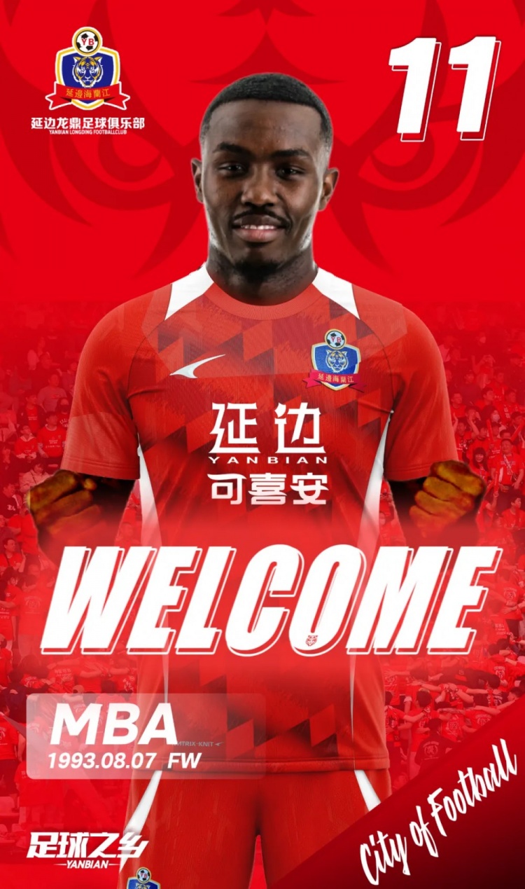 2月25日訊 官方消息,外援翁?hào)|-姆巴正式加盟延邊龍鼎足球俱樂部。