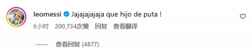梅西在評論區(qū)評論道:“哈哈哈哈,你這狗娘養(yǎng)的。”