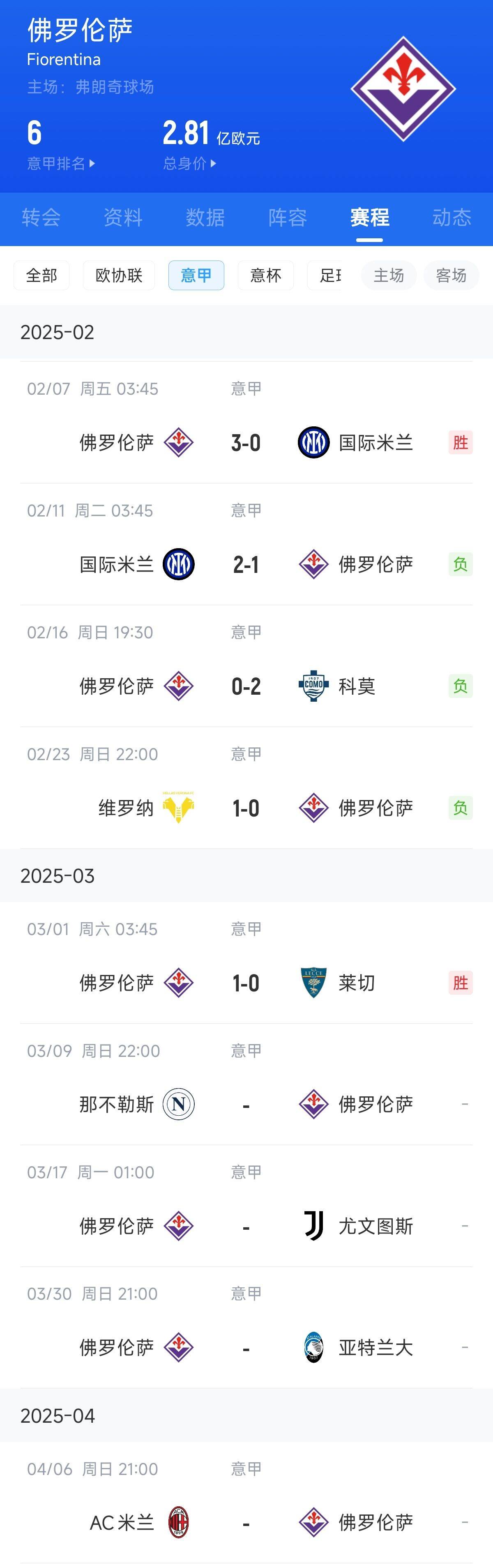 此前佛羅倫薩曾在補賽3-0擊敗目前的意甲頭名國米,接下來的比賽,佛羅倫薩與2/3/4名的對陣結(jié)果極為關(guān)鍵,堪稱冠軍判官。