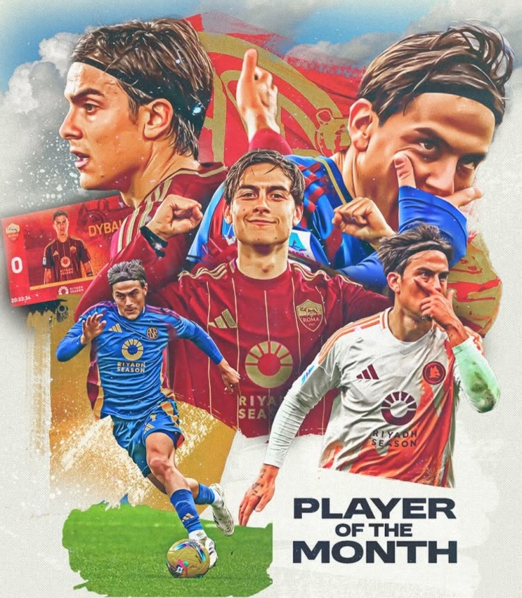 2月4日訊 羅馬官方公布了俱樂部1月最佳球員,前腰迪巴拉當選。