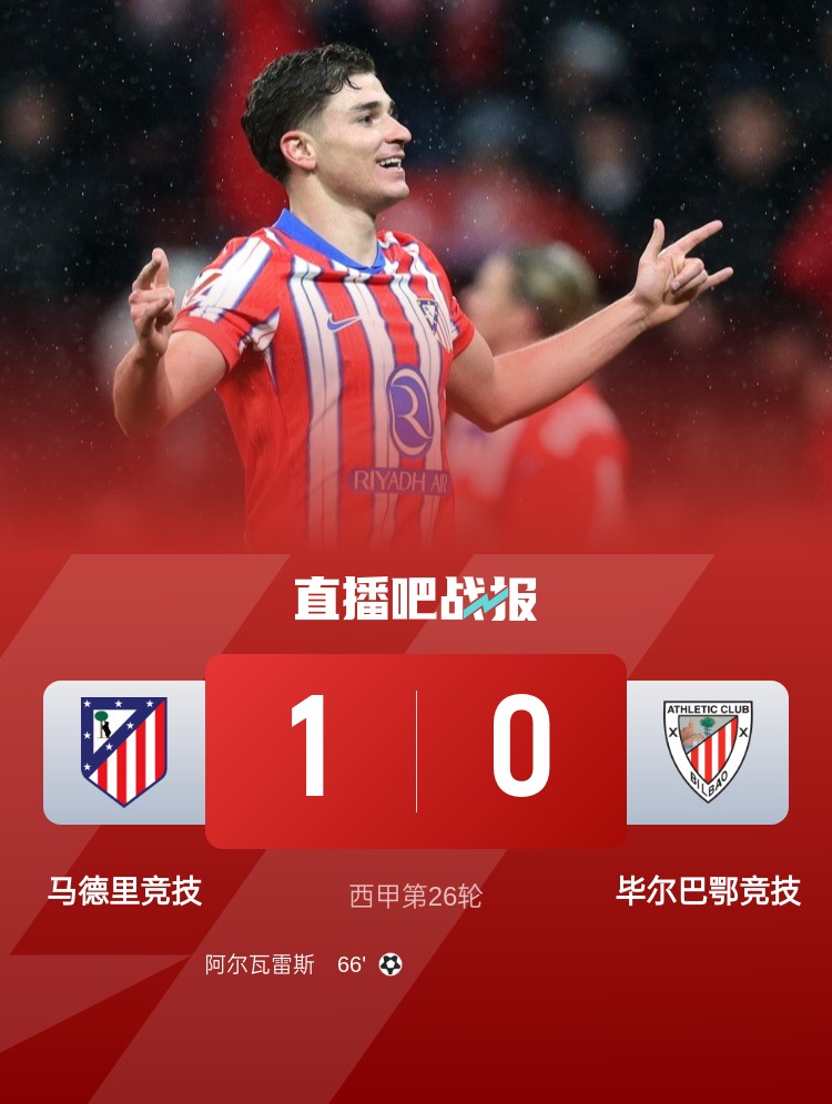 本輪西甲,馬競(jìng)1-0擊敗畢巴,阿爾瓦雷斯攻入全場(chǎng)唯一進(jìn)球。此役后,馬競(jìng)先賽登頂。