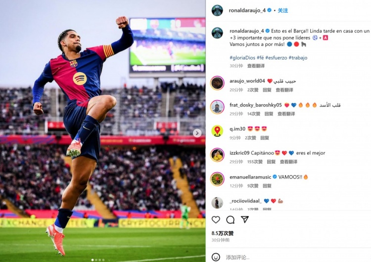 阿勞霍也在賽后通過(guò)社媒曬出自己的慶祝照,并配文:“這就是巴薩!在主場(chǎng)度過(guò)了一個(gè)美好的下午!贏下關(guān)鍵三分,并傳射建功!讓我們團(tuán)結(jié)一致贏得更多!”