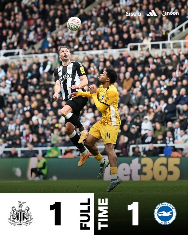 3月3日訊 紐卡和布萊頓在本輪足總杯常規(guī)時間1-1戰(zhàn)平,兩隊均在最后時刻被罰下一人。