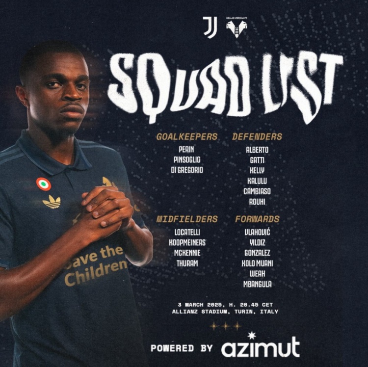 3月3日訊 北京時(shí)間3月4日凌晨3:45,2024-25賽季意甲聯(lián)賽第27輪,尤文圖斯將坐鎮(zhèn)主場迎戰(zhàn)維羅納。賽前,尤文官方公布了本場比賽球隊(duì)大名單,弗拉霍維奇領(lǐng)銜鋒線,中場僅4人。