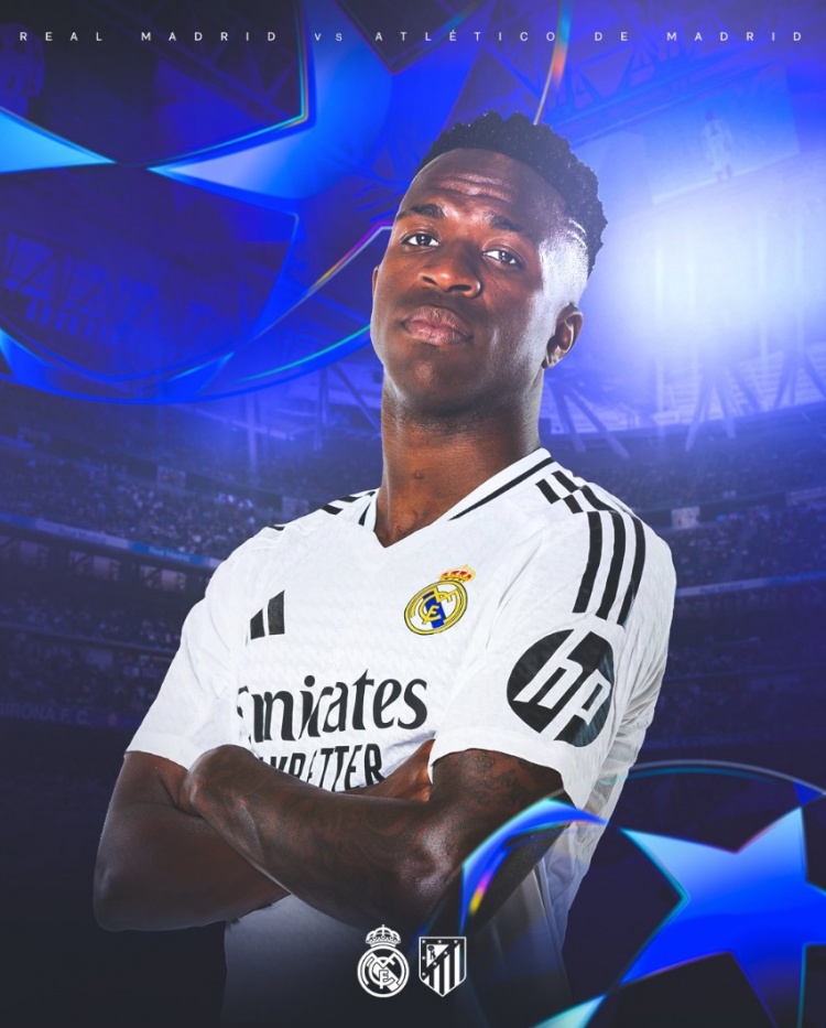 賽前,皇馬官方曬出海報(bào),為本場比賽預(yù)熱,維尼修斯單人出鏡,海報(bào)下方為對陣雙方隊(duì)徽,還有右下角的歐冠標(biāo)志。