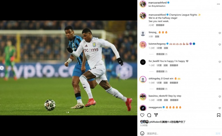 3月5日訊 在本輪歐冠,維拉3-1擊敗布魯日占得先機。本場比賽拉什福德首發(fā)登場,賽后他也在個人社媒曬出本場照片,配文寫道:“歐冠之夜!我們距離晉級還有一半路程,下周我們再見!” 標簽: 足球 英超 阿斯頓維拉