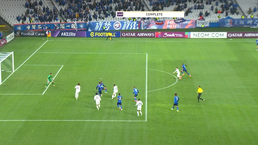 比賽第32分鐘,鮑亞雄后場(chǎng)出球被斷,禁區(qū)內(nèi)亂戰(zhàn)脅坂泰斗破門,隨后VAR介入,主裁去場(chǎng)邊查看回放后示意越位在先,進(jìn)球無效,申花仍0-0川崎前鋒。