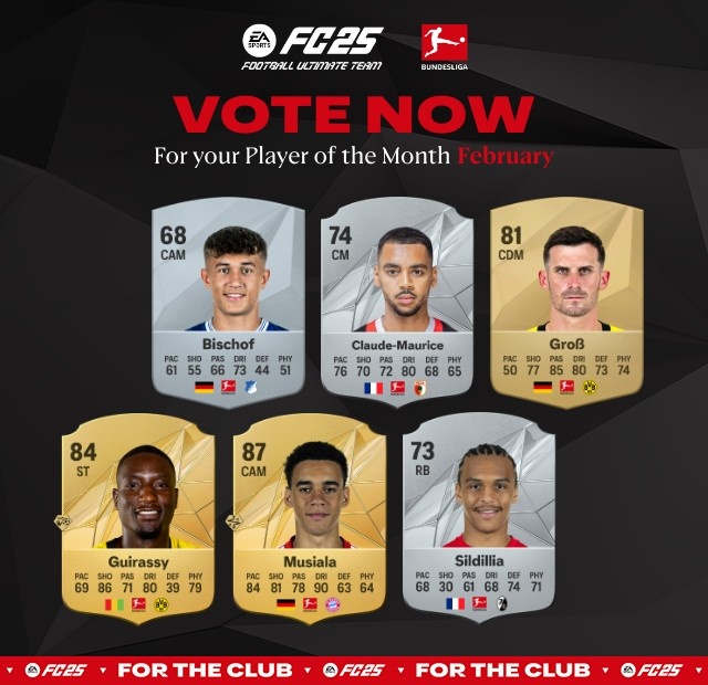 3月5日訊 德甲官方公布了2月最佳球員候選6人名單,穆西亞拉和吉拉西領銜。