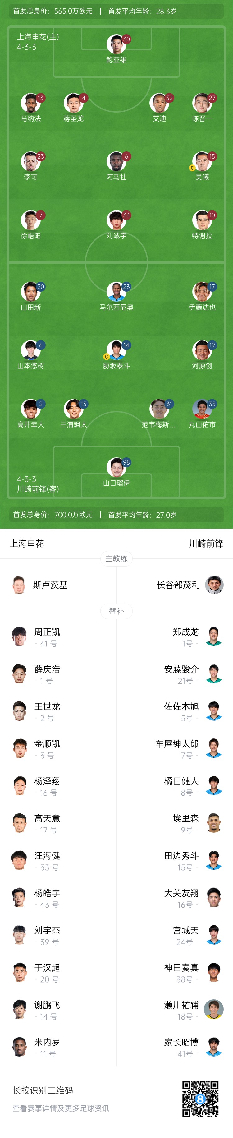 03月05日訊 北京時間20點,亞冠1/8決賽首回合,上海申花主場迎戰(zhàn)川崎前鋒,賽前雙方公布首發(fā)。