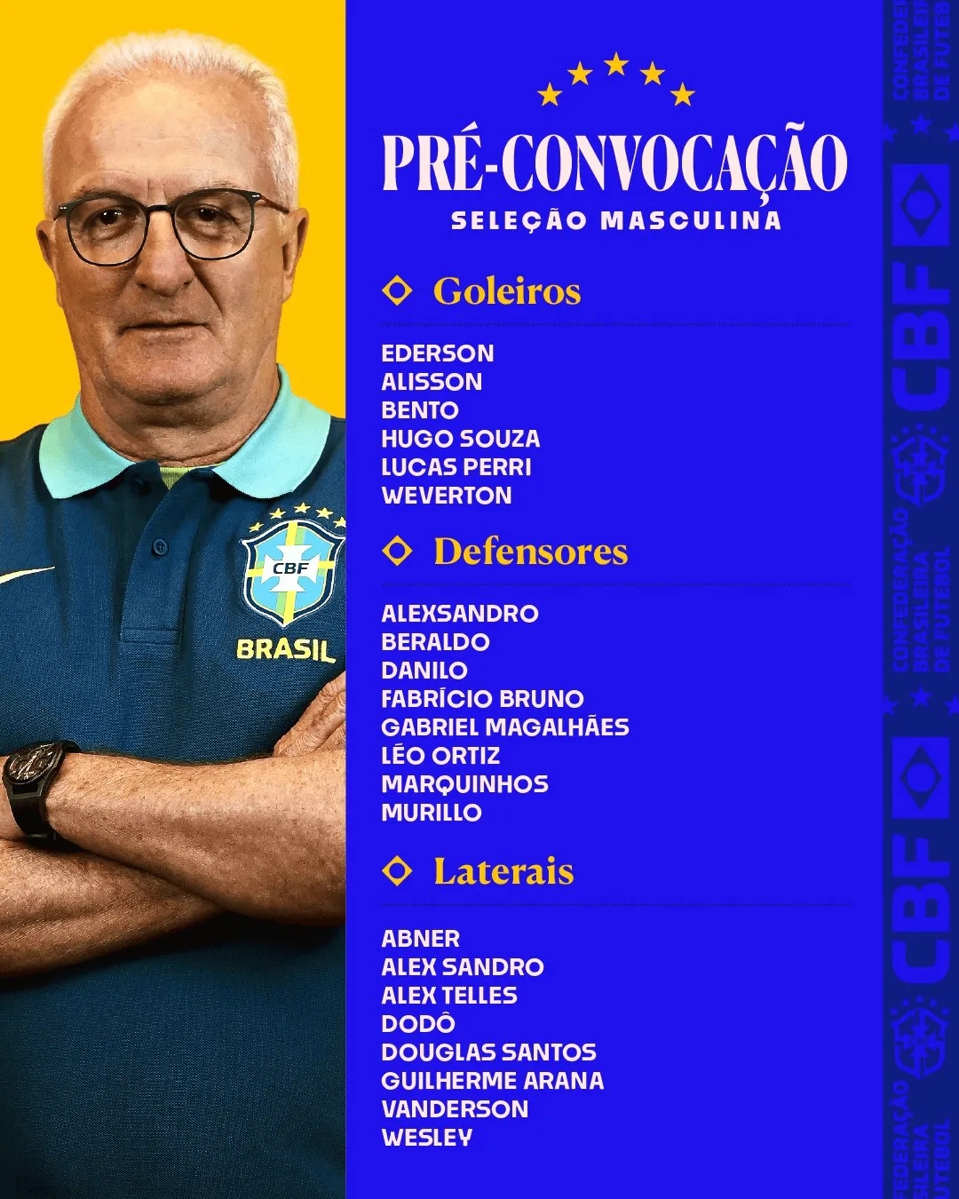 巴西足協(xié)此前公布了一份由多里瓦爾選定的52名球員名單,他們將參加3月份的世預(yù)賽。巴西隊(duì)將于20日和25日分別對(duì)陣哥倫比亞和阿根廷。