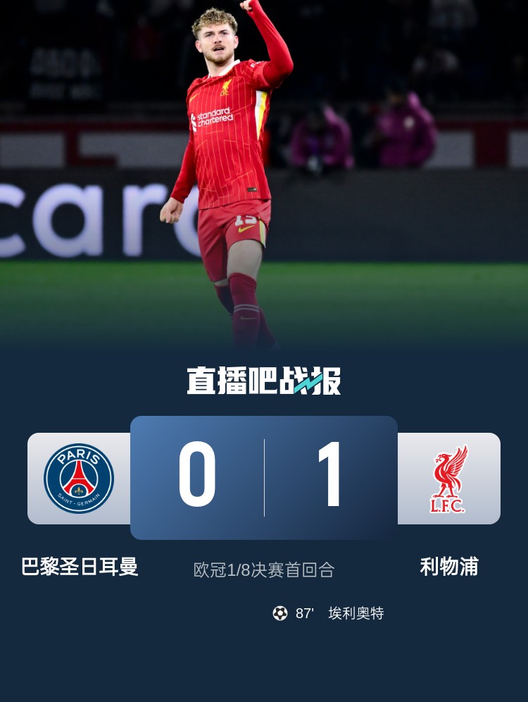 歐冠1/8決賽首回合,巴黎主場(chǎng)0-1遭利物浦絕殺,巴黎全場(chǎng)27次攻門一無(wú)所獲,利物浦1腳射正就進(jìn)球。