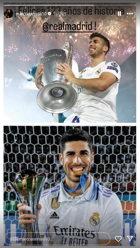 3月7日訊 皇馬成立于1902年3月6日,昨天是皇馬成立123周年的紀(jì)念日。前皇馬球員阿森西奧更新了社媒,向俱樂(lè)部送上祝賀。
