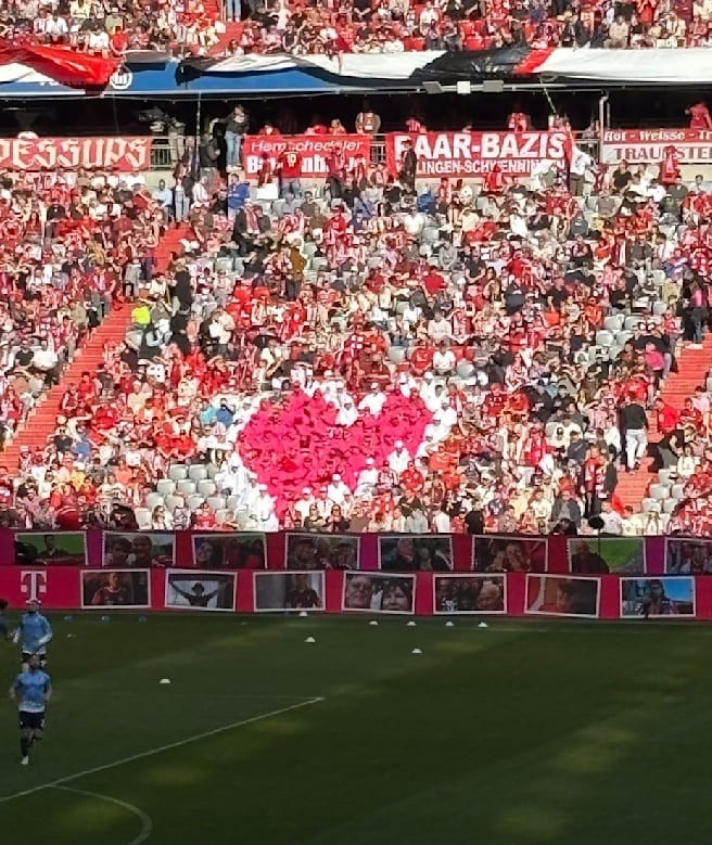 3月9日訊 本輪德甲,拜仁在主場2-3不敵波鴻?!秷D片報》報道,拜仁安聯(lián)球場看臺上標志性的德國電信“T”字形圖案在本場比賽被心形圖案取代。
