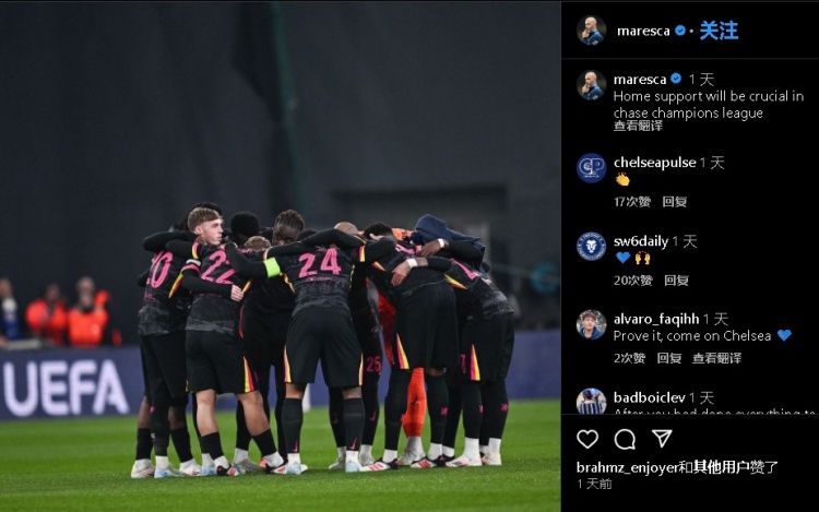 馬雷斯卡社媒寫道:主場球迷的支持,是我們爭奪歐冠資格的動力?。ㄓ⒊八模?/p>