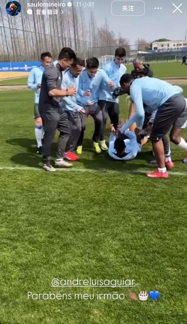 3月10日訊 昨天是申花外援安德烈-路易斯的31歲生日。另一名申花外援米內(nèi)羅更新社媒,曬出球隊在訓(xùn)練時為路易斯慶祝的視頻。