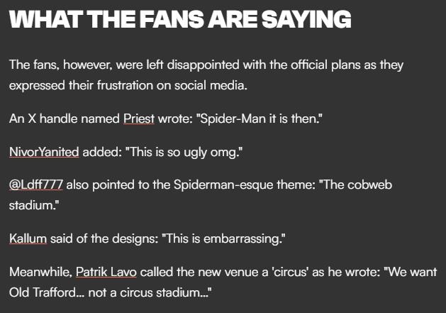 球迷吐槽曼聯(lián)新主場設(shè)計方案:太難看了!擱這整馬戲團呢?