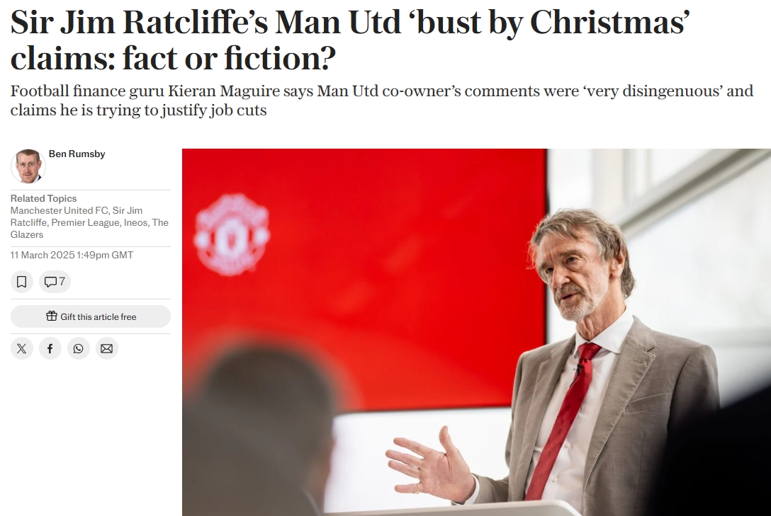 "所有這些跡象表明,他們?cè)噲D通過(guò)制造恐慌來(lái)為裁員找借口。別忘了,他們剛剛與阿迪達(dá)斯簽下每年9000萬(wàn)英鎊的贊助合同,還和Snapdragon達(dá)成了每年7000萬(wàn)英鎊的合作協(xié)議。"