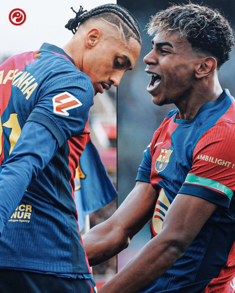 數(shù)據(jù)統(tǒng)計(jì)顯示,拉菲尼亞是本賽季西甲唯一在運(yùn)動(dòng)戰(zhàn)能夠創(chuàng)造機(jī)會(huì)50+的球員(57次),他在26輪聯(lián)賽貢獻(xiàn)13球7助攻;亞馬爾本賽季成功過人高達(dá)95次,比其他西甲球員至少多出23次,也是本賽季西甲唯一助攻上雙的球員(11次)。