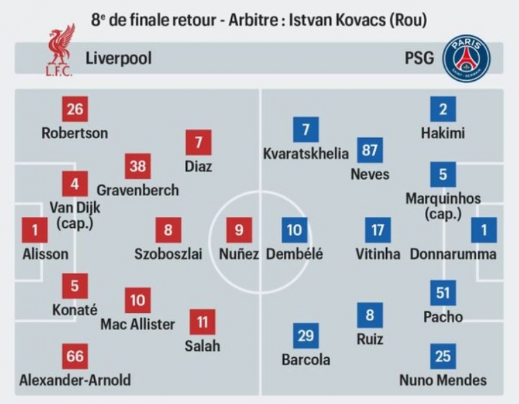 在雙方首回合交手中,利物浦客場1-0巴黎。