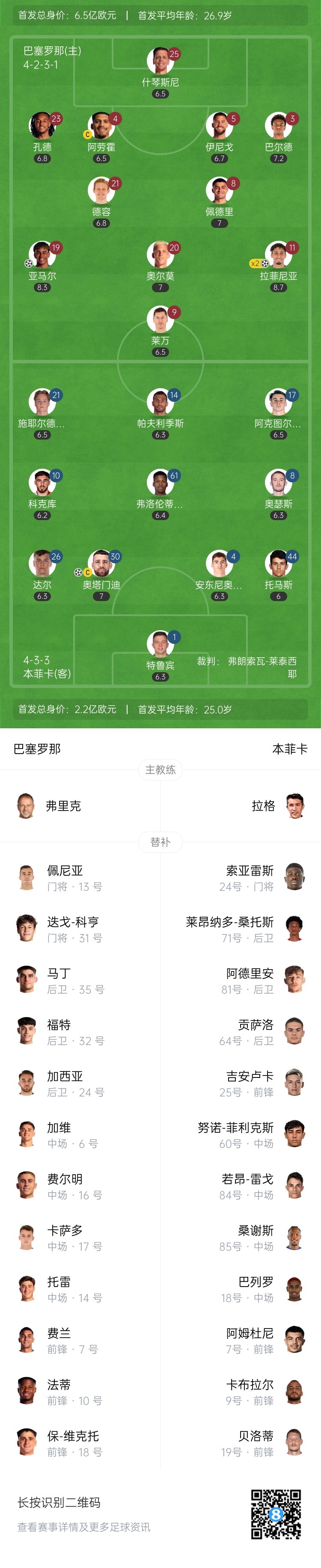 第42分鐘,巴薩反擊再來!巴爾德推進到禁區(qū)前分球左側拉菲尼亞,拉菲尼亞左腳抽射破門!巴薩3-1領先本菲卡,總比分4-1↓