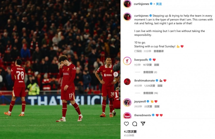 3月12日訊 利物浦在本輪歐冠焦點戰(zhàn)主場被巴黎點球淘汰,柯蒂斯-瓊斯替補登場罰丟點球。