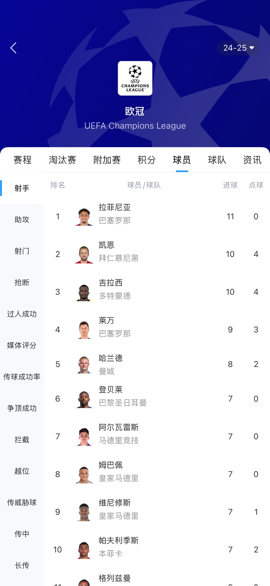 本賽季歐冠,拉菲尼亞出戰(zhàn)10場貢獻11球5助攻。