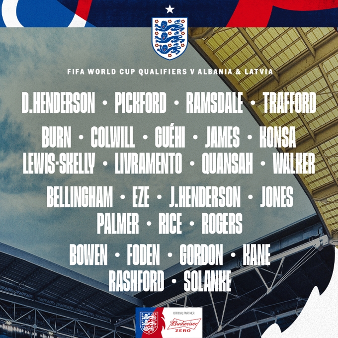 本期英格蘭隊將在3月底出戰(zhàn)兩場世預(yù)賽,對手分別是阿爾巴尼亞和拉脫維亞。