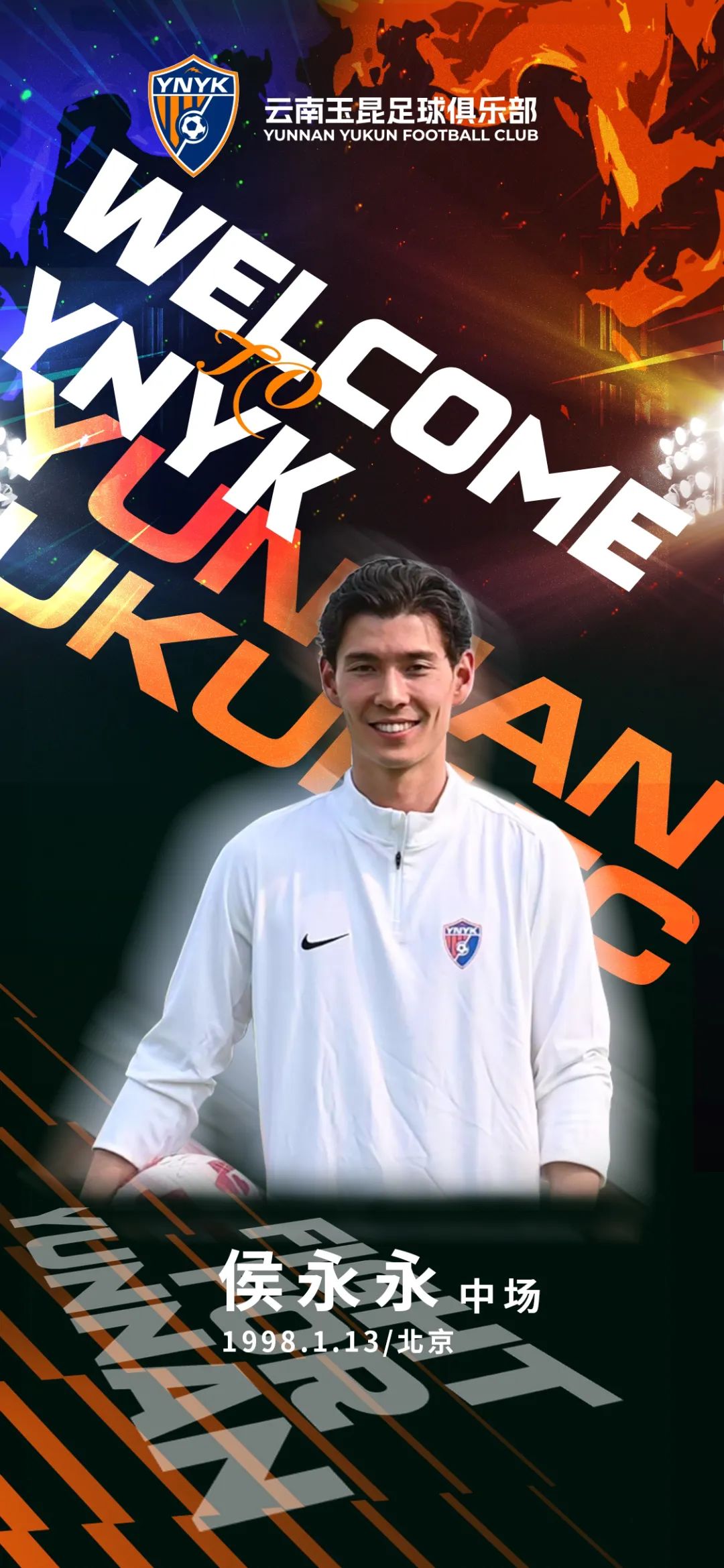 作為中國男足新晉國腳,侯永永因轉會問題錯過了玉昆在泰國大部分的集訓,而在1月26日,侯永永與奧斯卡穿著玉昆訓練服在一起吃飯的照片出現(xiàn)在網(wǎng)絡上,隨后玉昆俱樂部官方宣布,侯永永正式加盟球隊。