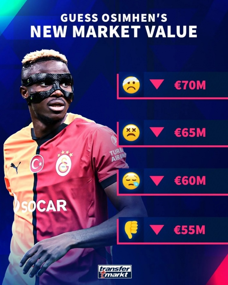 3月20日訊 德國轉(zhuǎn)會市場即將更新土超球員的身價,官方社媒預熱奧斯梅恩的身價變動。