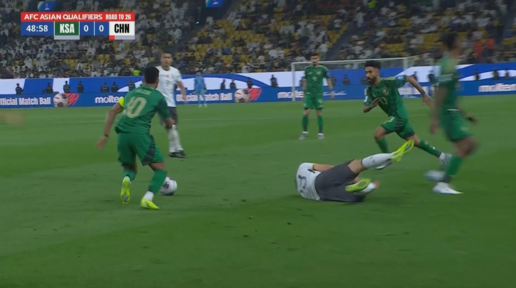 比賽下半場(chǎng)第50分鐘,拜合拉木后場(chǎng)護(hù)球被斷,沙特就地進(jìn)攻取得進(jìn)球,1-0領(lǐng)先。