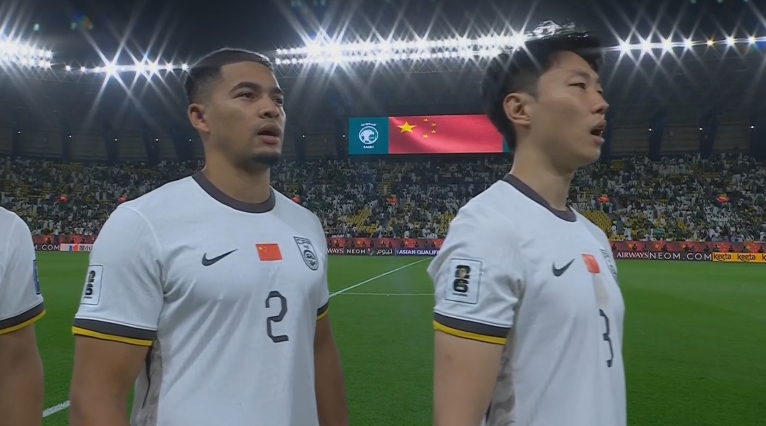 大戰(zhàn)一觸即發(fā)!賽前國歌儀式,國足首發(fā)11人高唱國歌