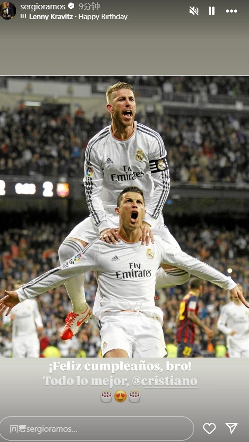 拉莫斯也曬出同C羅在皇馬時(shí)期的合照,并表示道:“祝賀兄弟!祝福你一切都好?!?/p>