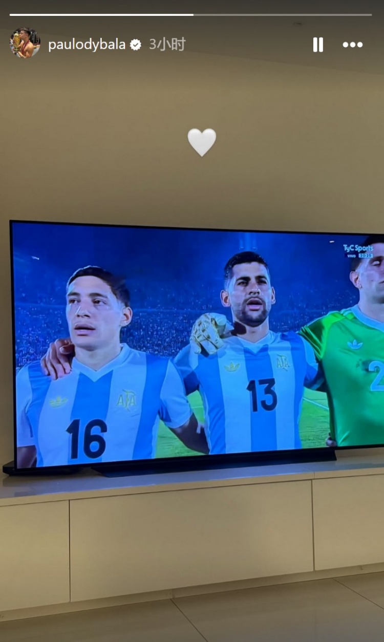 迪巴拉曬出比賽畫面,并配上了愛心表情。