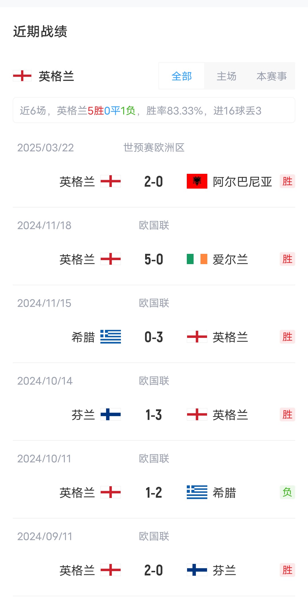 上輪比賽英格蘭客場(chǎng)2-0擊敗阿爾巴尼亞,拉脫維亞客場(chǎng)1-0小勝安道爾。目前兩隊(duì)實(shí)力差距明顯,在最新的FIFA排名中,英格蘭排在第4,而拉脫維亞排在140。