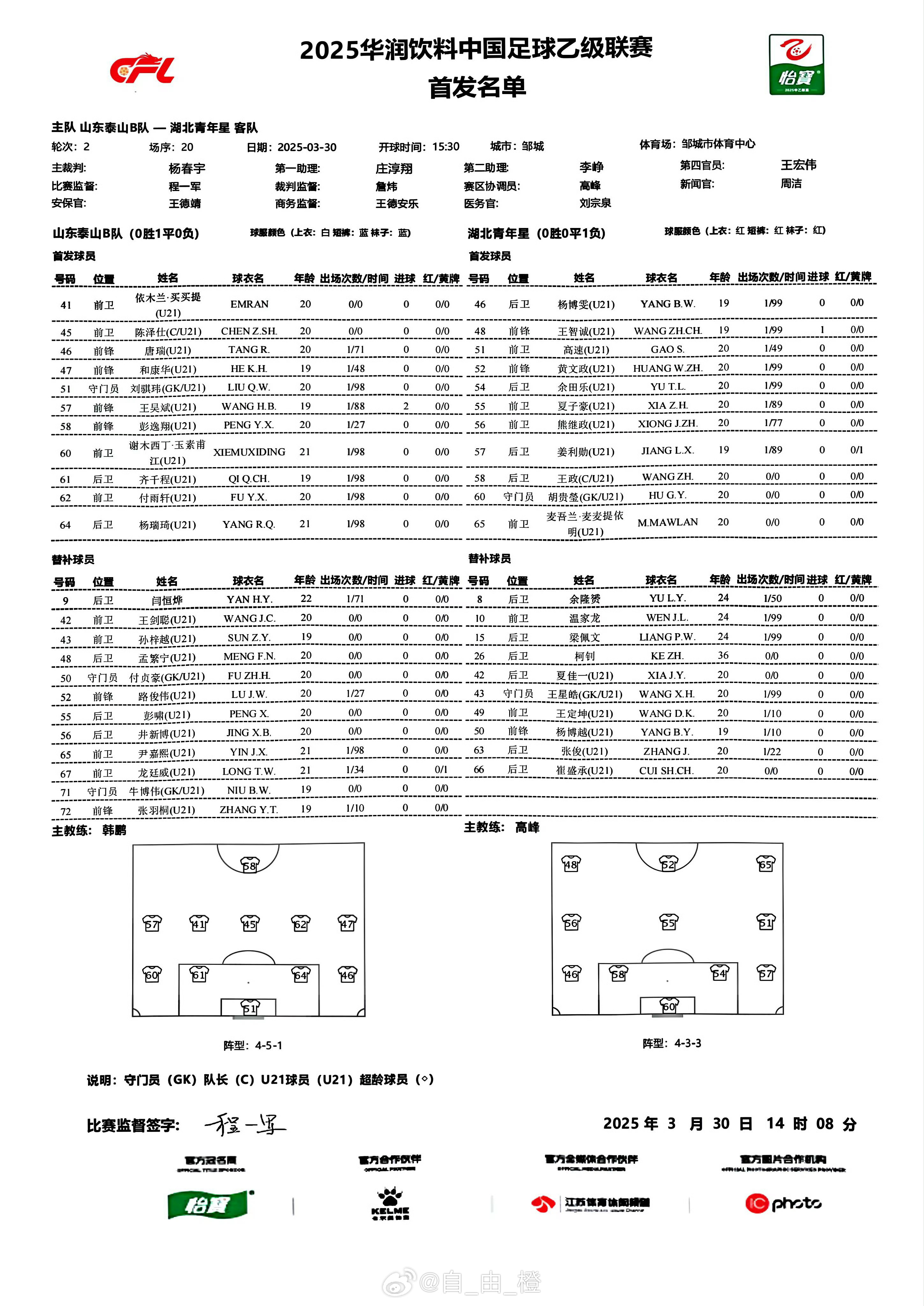 03月30日訊 今日下午進(jìn)行的中乙第2輪比賽,山東泰山B隊vs湖北青年星,依木蘭、陳澤仕先發(fā),因年齡造假被禁賽3個月的謝木西丁解禁復(fù)出后繼續(xù)首發(fā)。 標(biāo)簽: 足球 中超 中國足球 山東泰山